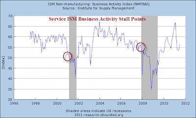 I commented on the services ISM Business Activity number on Wednesday in ISM says "Business Conditions Flattening Out"; Why Services Number Worse Than It Looks; Unsustainable Conditions.