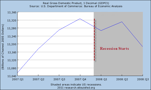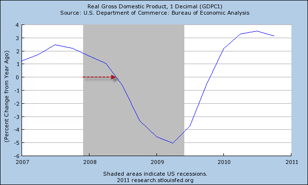 Notice that chart shows declining "growth". GDP was actually rising at the time the recession started.