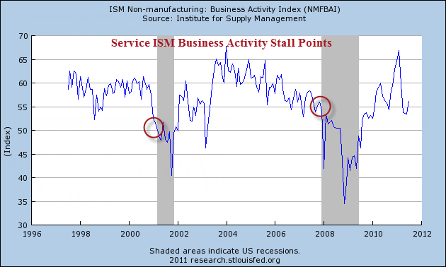 I commented on the services ISM Business Activity number on Wednesday in ISM says "Business Conditions Flattening Out"; Why Services Number Worse Than It Looks; Unsustainable Conditions.
