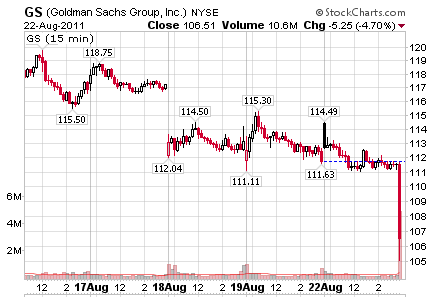 Shares of Goldman Sachs hit the skids in late trading so much so that people were asking "what’s up?"
