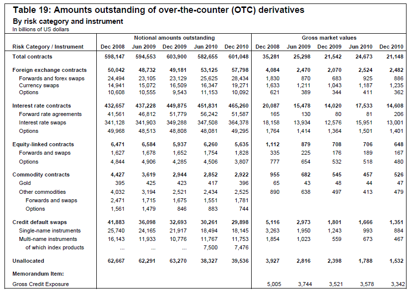 Of that number $465 trillion was interest rate contracts. For comparison purposes, a mere $65 billion is bet on gold.