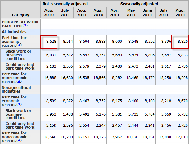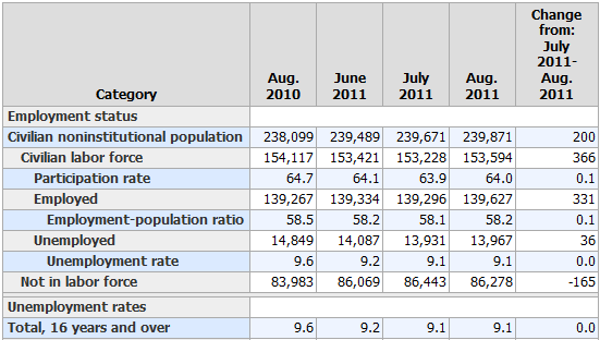 Please consider the Bureau of Labor Statistics (BLS) August 2011 Employment Report.