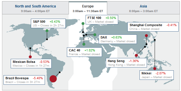 The CAC 40 (CAC40) in Paris was up 1% at the close, while London’s FTSE 100 (UKX) rose 0.5% and the DAX (DAX) in Frankfurt rose 0.6%.