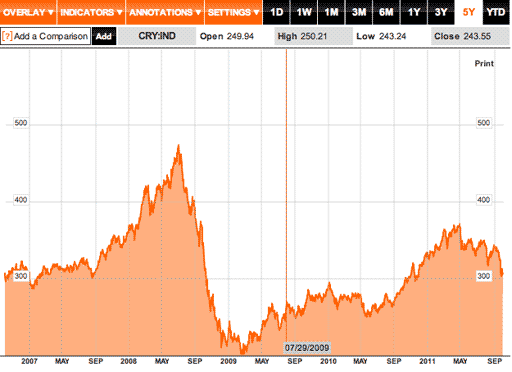 Stoneleigh: Chris Martenson recently posted a rebuttal to the deflationist take on commodities – Commodities Look Set to Rocket Higher. In contrast, our deflationary view here at The Automatic Earth, written at the end of August, is encapsulated in Et tu, Commodities?. To recap, our position is that commodity prices are coming off the top of a major speculative episode and consequently have a very long way to fall.