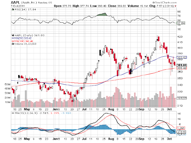 Near term, although investors reacted negatively to iPhone 4S and Jobs death, Apple should have good earnings in this holiday season (Christmas Rally) with the iPad, iPhones (4, 4S, 3GS) among the popular devices along with Samsung Galaxy S II