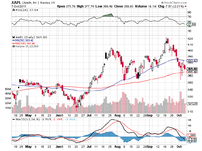 Near term, although investors reacted negatively to iPhone 4S and Jobs death, Apple should have good earnings in this holiday season (Christmas Rally) with the iPad, iPhones (4, 4S, 3GS) among the popular devices along with Samsung Galaxy S II
