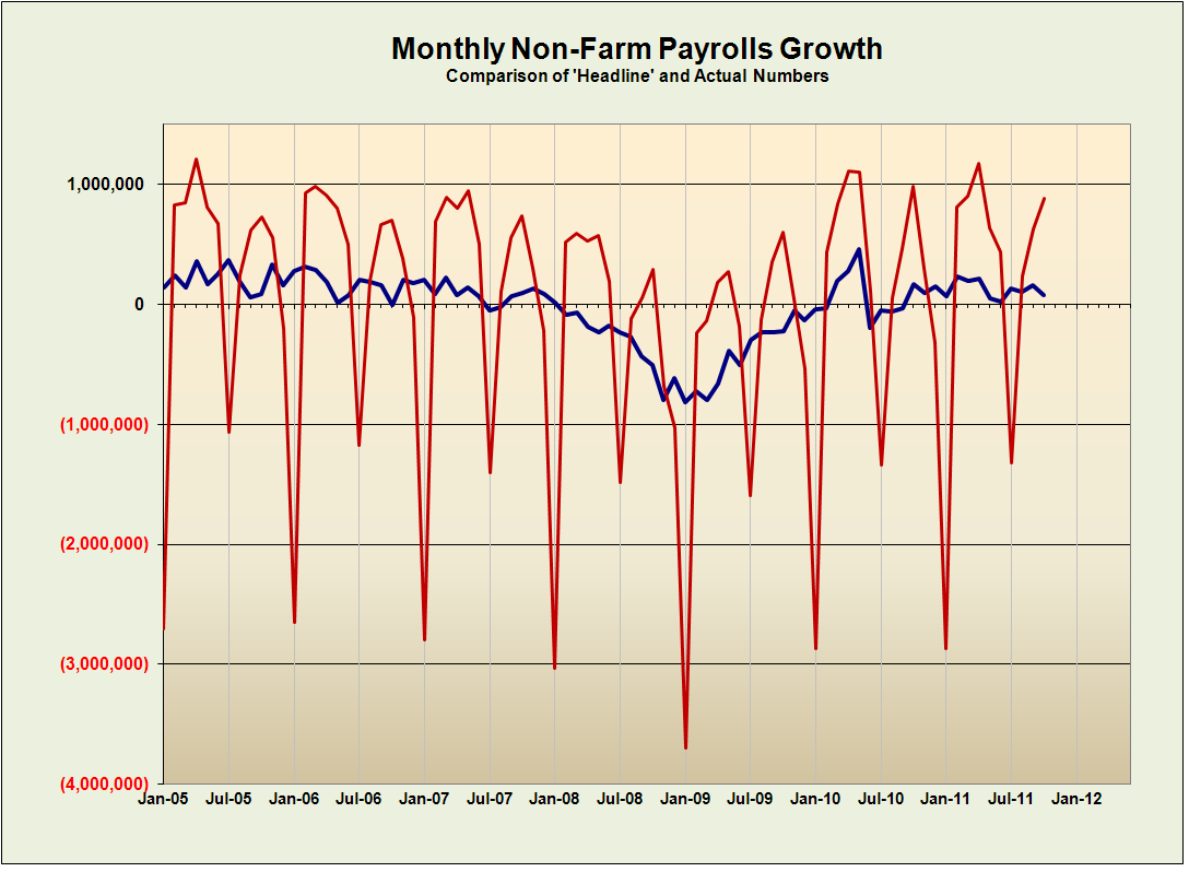 So the truth is probably that jobs growth was flat to negative. But even that nugget of truth is liable to be lost in future revisions. I wonder if the desire to show growth will skew the statistics even further as we go forward.