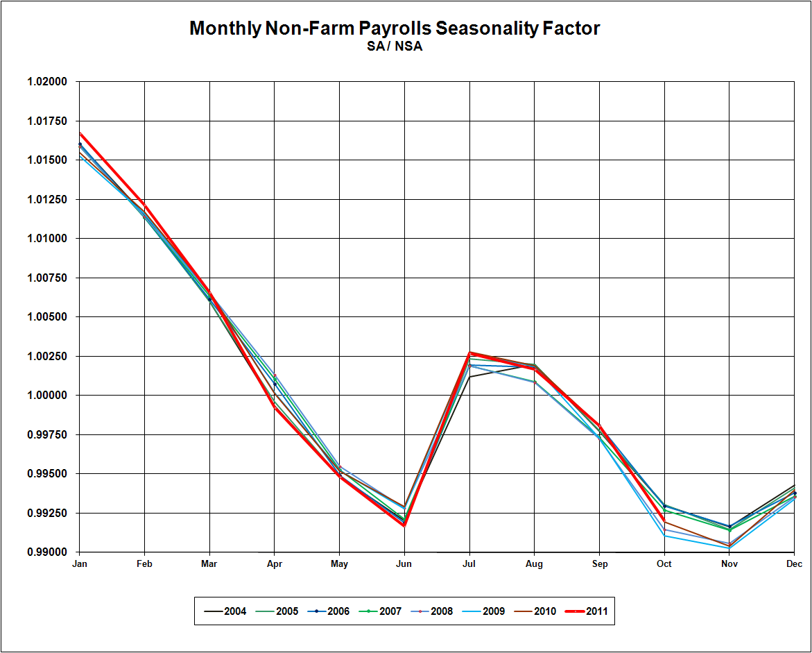 Typical games are to play with the chain deflator in GDP to make it look better, and to play with seasonality, birth-death model, and rolling revisions in the payrolls numbers. And of course the tinkering with CPI is apparent to anyone not carrying an agenda who has looked into the mechanics of the changes in the past ten years.