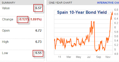 Nonetheless, in spite of these swings, the yield on both 10- and 2-year Italian bonds is over 7%, and Spanish bonds are sick as well.