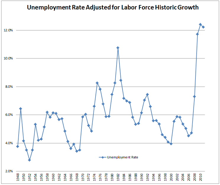 Unemployment Rate Adjusted for Normal Labor Force Growth 1948 to Present