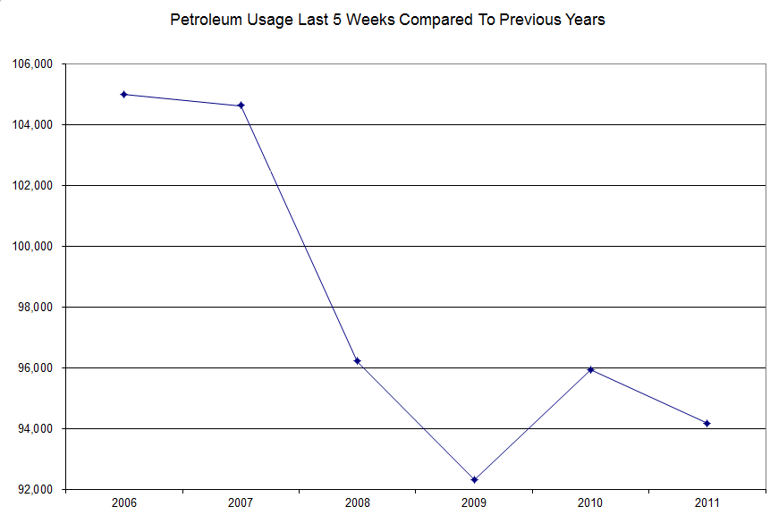 Petroleum usage history for the past 6 years for this 5 week snapshot – you can see the drop from ’06 to ’07 was small but I caught that trend in Oct of ’07 and got out of the market.