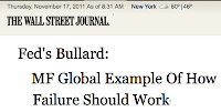 A month ago, Fed governor James Bullard stated on CNBC that the issues with MFG did not constitute a systemic problem. I wrote about this at the time Bullard made those comments. I made a public bet with Bullard (a six pack of beer) that he would be forced to eat his words. I never did hear from him.