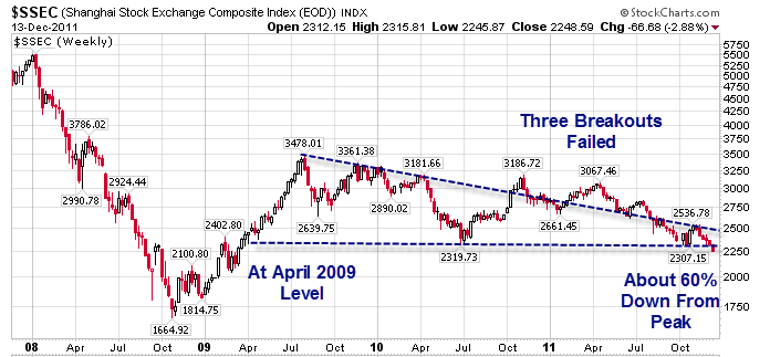 Well, I have to say the decoupling theory was correct, except in reverse. The $SSEC Shanghai stock index is down about 60 percent from the 2008 high and has shown no propensity to bounce since summer of 2009, precisely when the US recession ended.