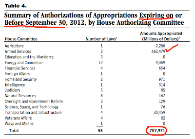 There are two lists. This first one looks at the spending for which the necessary enabling legislation has already expired: