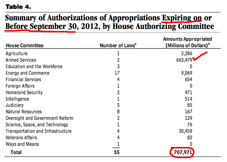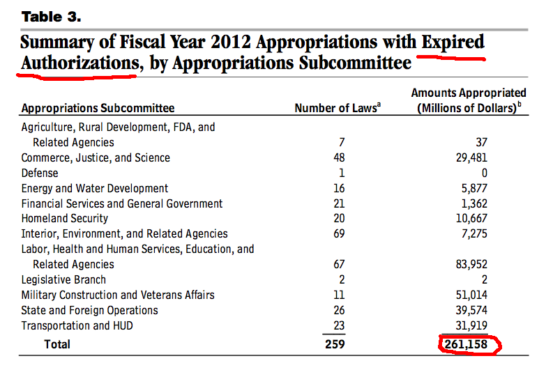 There are two lists. This first one looks at the spending for which the necessary enabling legislation has already expired:
