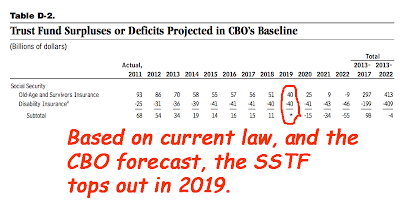 The CBO now forecasts Social Security to run into trouble in just a few years. This is a very substantial change in the outlook for SS. Changed fortunes make it certain that America’s favorite entitlement program will be on the table for a significant re-vamp.