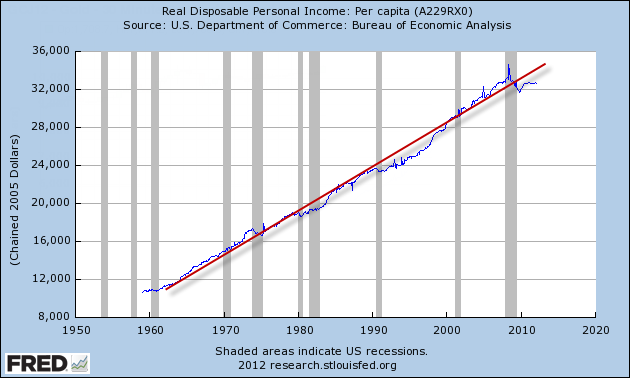 The bottom 80 percent or so have fallen much further behind than the per capita charts suggest.