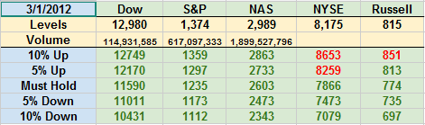 Not much was missed so far if you didn't participate.  "Unfortunately" nothing got cheaper, other than our hedges and, as expected, only our energy plays did much in the past week as we're still at the same top we were iffy about at the time.  Still – we're over our mark on the S&P and especially if the Dow is over 13,000 and for sure if the Nas breaks over 3,000, we'd BETTER have bullish plays in our portfolio and these are my 10 favorites for a breakout.