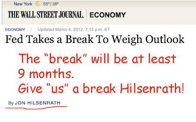 Said it before, I'll say it again. I’m disgusted that Bernanke uses Hilsenrath and the WSJ as his go-to place to leak monetary policy. Bernanke made a big deal about improving transparency at the Fed recently. He just blew any credibility that he might have gained. Nothing has changed. Ben B. is a leaker.