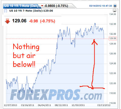 Absent a new move by the Fed to contain long-term interest rates, the ten-year looks like it is headed to 3%. The Chinese are not buying, the banks are full up with paper (and underwater), PIMCO et al are long duration up the wazoo, and any thought that retail interest in five-year bonds at 1% will save the day is just misguided (dumb money is not that dumb).