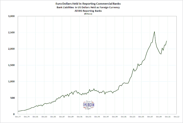 My current estimate of eurodollars is 2.25 trillion which is not insignificant even in these days of an exploding Fed Balance Sheet.