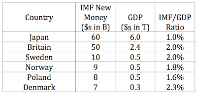 A big agenda item for the weekend is the $400b capital raise for the IMF. There will be plenty of corridor conversations and side deals regarding which country puts up what, and what deals it gets for the money. There are two sideshows of interest in the IMF's new money raise. The first is the USA; the second is Switzerland.