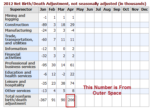 Birth/Death assumptions are supposedly made according to estimates of where the BLS thinks we are in the economic cycle. Theory is one thing. Practice is clearly another as noted by numerous recent revisions.