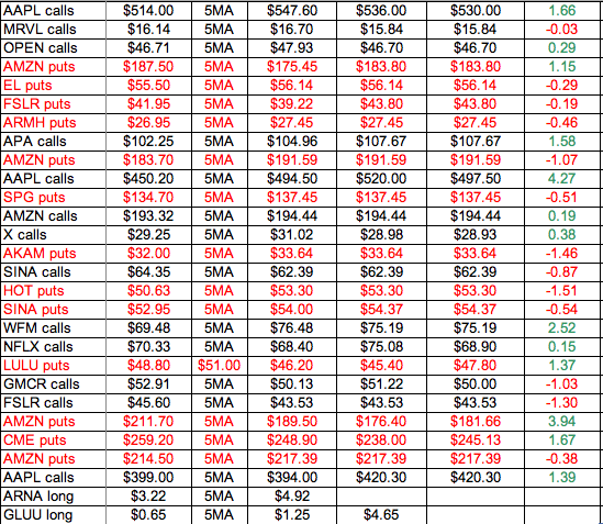 Our worst lost was -1.54R on HOT puts. But we had multiple big winners, especially in AAPL calls as we run that trend for a long time. As well as WFM calls and some AMZN puts when we finally caught a nice drop at the beginning of the year.