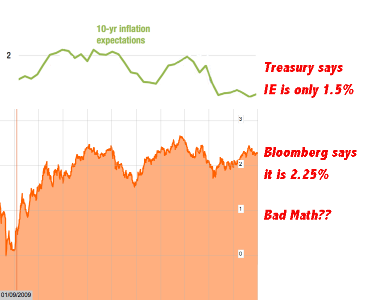 - Treasury made a mistake in the calculation for Implied Inflation. They did the math wrong. (A distinct possibility.)
