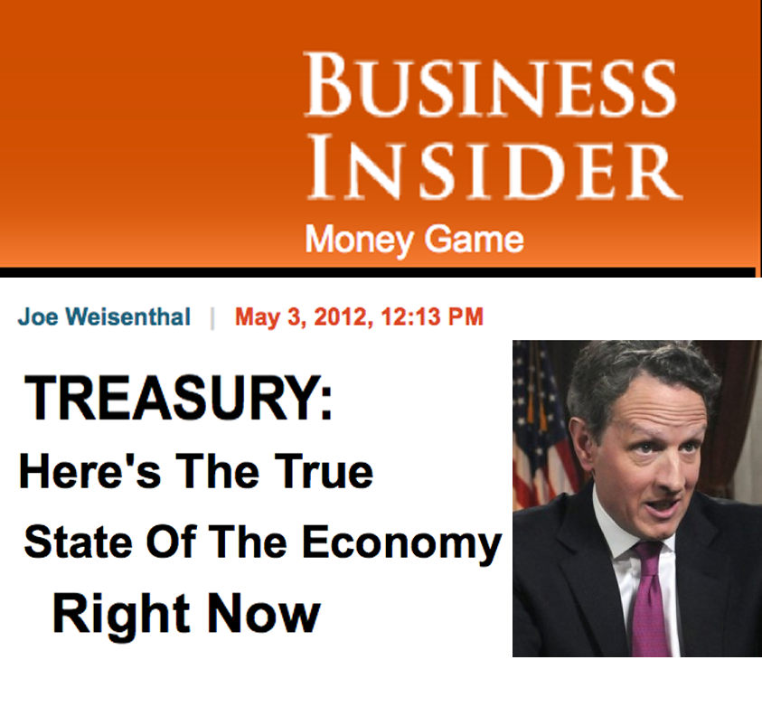 The report by Treasury was widely read. It was favorably referenced in a number of E-Mags. This article at Business Insider includes the words “the True State of the Economy” in its title: