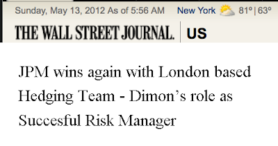 I think that JPM screwed up this critical calculation. They bought some protection in a market that they thought was correlated. It turns out the were right, but they bought too much protection so the hedge losses ended up being greater than the gains from the underlying portfolio. If JPM had hedged with a much smaller exposure to CDX.NA.IG.9 (the derivative contract that done JPM in) the headlines would have been different. We might have gotten these instead: