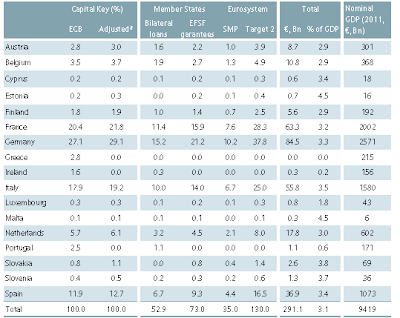 Euro area exposure via bilateral loans and EFSF guarantees: