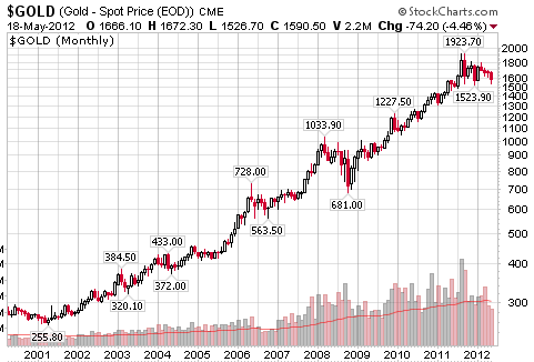 One of the reasons gold is at $1600 with the US dollar index above 81 is precisely because central banks in general (notably the Fed, the ECB, the Bank of England, and China) have printed nonstop and the Fed and the ECB have initiated all sorts of liquidity and QE measures. In addition, the ECB's balance sheet is more bloated than the balance sheet of the Fed thanks to the LTRO program.