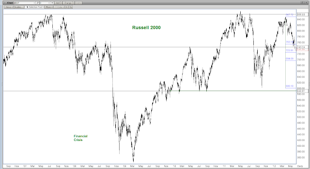 I prefer to use the Russell 2000 when determining such things, because the other indices are too narrow and subject to single sector vagaries and manipulation. This is especially true of the Dow and the NDX.