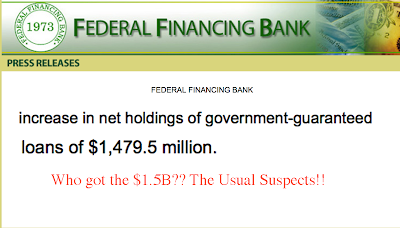 I believe that the activities of the FFB will be a campaign issue before too long. Maybe that is the reason for the tardy release of data. If a politician wanted to blast the Administration, the lending to the private sector by the FFB would be a good place to look for some ammo. Consider the money that went out the door, and who got it in March: