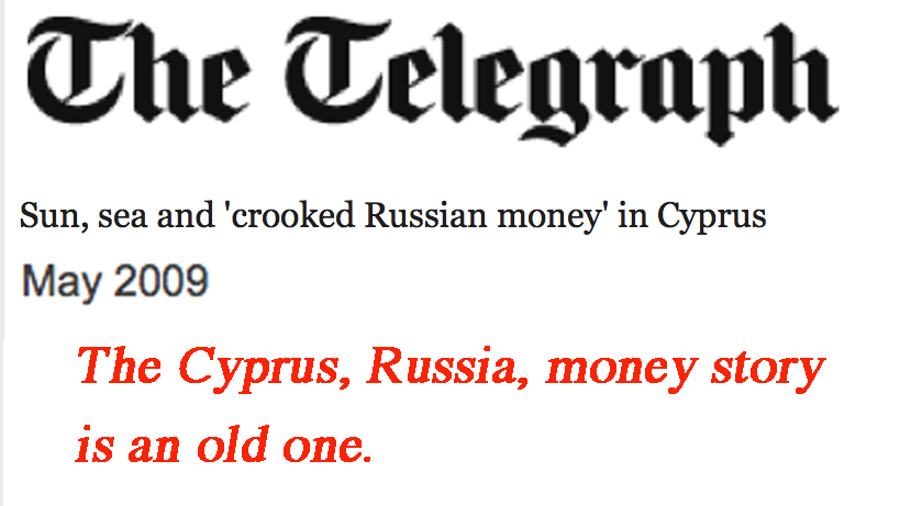 (III) – Money. Russians have been using Cyprus as an offshore banking center for years. If Cyprus’s banks are in trouble, then some of that money is at risk.