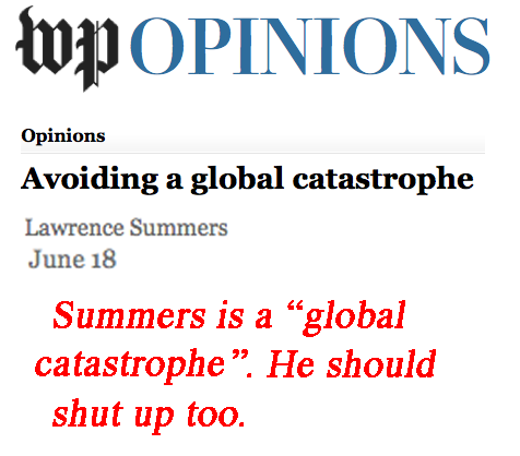 In 1995 Clinton promoted Summers to Deputy Secretary of the Treasury. That was payback for his efforts in the Mexican Bailout. Larry's OpEd last week was his way of getting a foot in the door to become Obama's next Treasury Secretary. The expression, "Professional Blowtard," comes to mind.