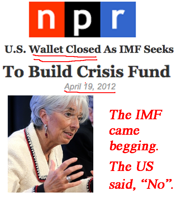 I) The US took a pass on the $450Bb increase in the IMF’s lending capacity. While one can debate the merits of the US decision to abstain from contributing its share of the IMF capital raise, one can’t ague that the US, having taking a walk, should still have a say in the outcome.