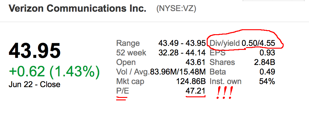 I think that T and VZ are trading fodder for computers. They are fine stocks to “rent” from time to time in an effort to make a buck. But those that buy this stuff, and then go to sleep thinking their money is safe, are either ill informed or crazy. At 45++ Xs earnings an investor could lose five years of income in any given month.