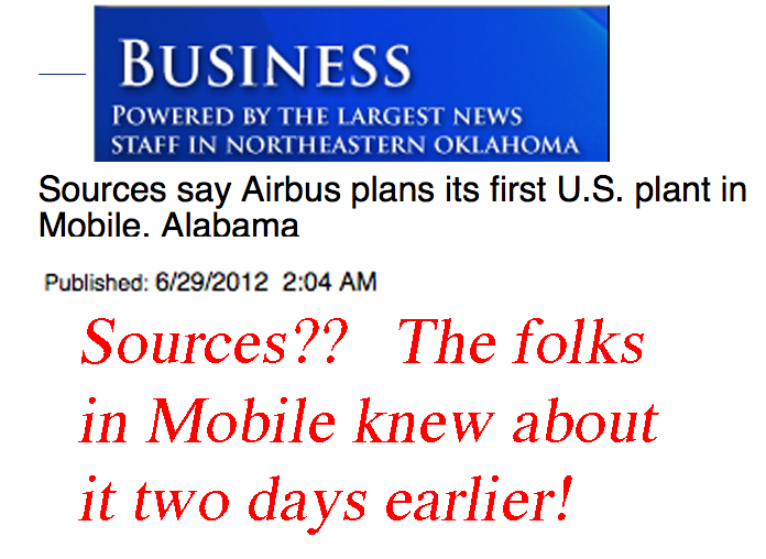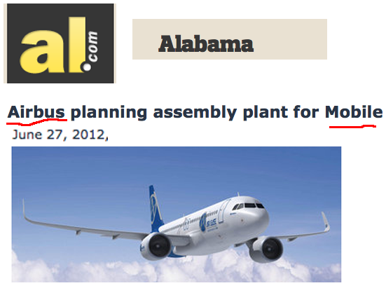 Given what is happening in Europe these days, I'm surprised that Airbus is doing this. Places like Spain could use the $600m investment in plant, equipment and jobs that goes with this. Good for Mobile, not so good for Europe.