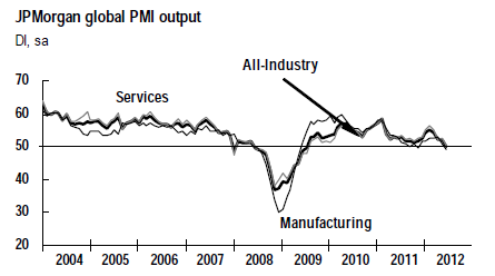Commenting on the survey, David Hensley, Director of Global Economics Coordination at JPMorgan, said: “The PMIs suggest that the global economy downshifted into neutral gear in June. Output and new order inflows were only marginally above stagnation levels, signalling that global GDP growth over Q2 2012 as a whole will be the most sluggish for around three years.”