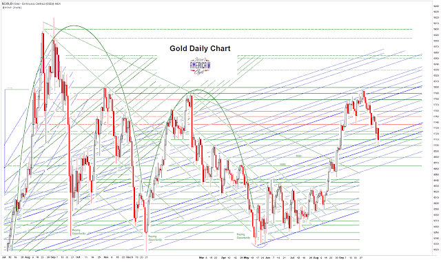 Gold and silver were under pressure all day as Wall Street started gearing up for this weeks Treasury auctions, and the FOMC rate decision tomorrow at 2:15.