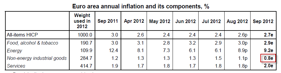 As with the Fed, apparently the ECB does not consider the two key things people need (food and energy) as important. Instead the ECB appears be worried about deflation in non-energy industrial goods.