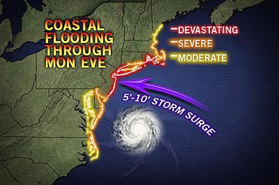 There is the potential from the central New Jersey coast to New York City and western Long Island have some of their worst coastal flooding on record with Sandy tracking into New Jersey.