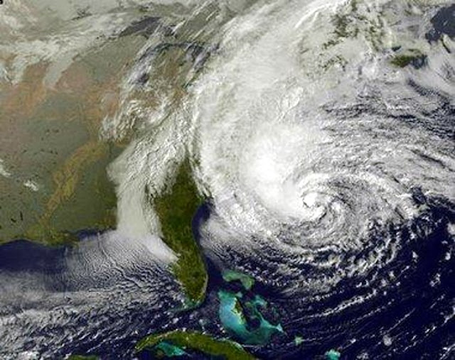 There are blizzard warnings going up on the lee side of the storm, as the moisture of the hurricane meets the Canadian cold front.