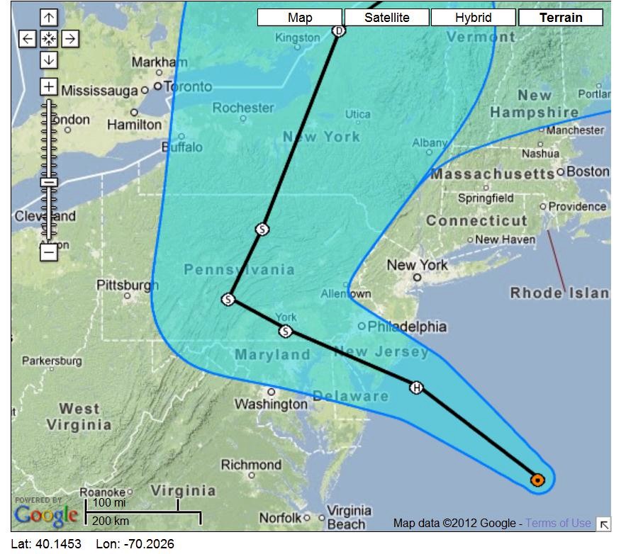 My meteorologist friend said that the hurricane may present a new record low pressure reading for this area when it makes landfall in New Jersey, most likely a little to the north of the Atlantic City area.