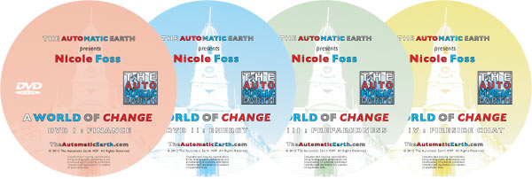 It has taken a while, but now The Automatic Earth can proudly announce the release of our brand new 4 DVD set, A World of Change, featuring the lectures of Nicole Foss as she delivers them year round to audiences all across the world.