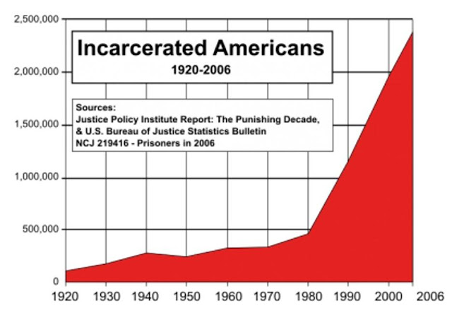 And it may also be a consequence of a misguided social policy tool with regard to certain types of drug enforcement and criminal deterrence from the bottom up, the 'three strikes' rule, repression as a general policy bias, and the privatization of the prison system.