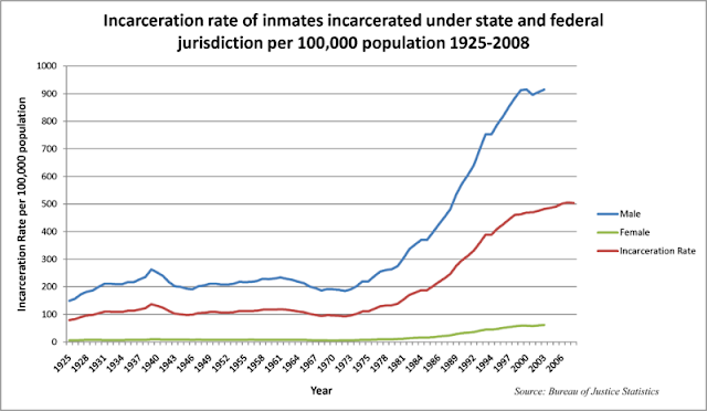 The watershed year for an increase in imprisonment levels seems to be 1980. Did anything significant happen that year? One can only wonder.