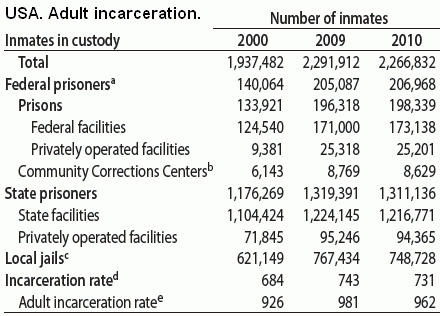 And it may also be a consequence of a misguided social policy tool with regard to certain types of drug enforcement and criminal deterrence from the bottom up, the 'three strikes' rule, repression as a general policy bias, and the privatization of the prison system.